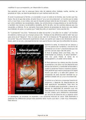 En el numero de Octubre 2022, de la Revista De Sur a Sur, aparece publicada mi reseña sobre el libro "El paciente que mas me preocupa" de Emilio González, editado por Ruinas circulares de Argentina.